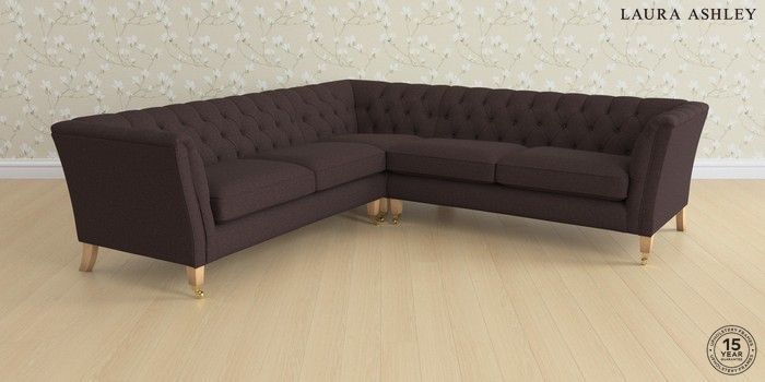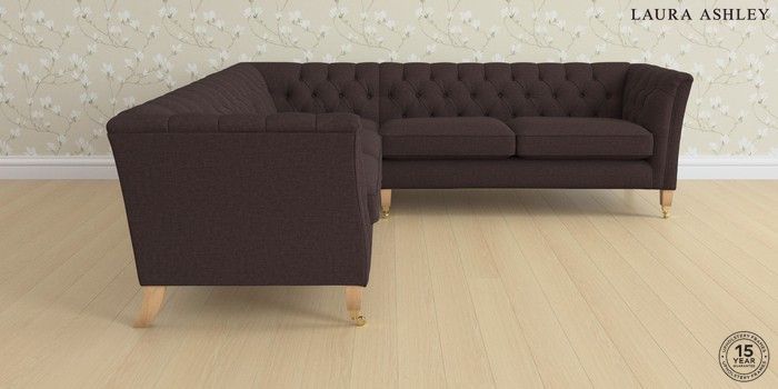 7.0.3 Buy Chatsworth Button Back by Laura Ashley Medium Corner Sofa - Universal Bainton Chocolate Brown Straight Brass Castor - Light Oak from the Next UK online shop Click here to use our accessible website