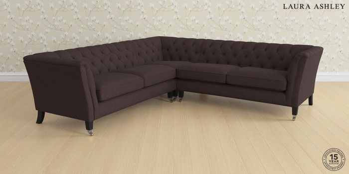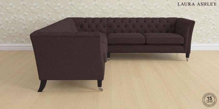 7.0.3 Buy Chatsworth Button Back by Laura Ashley Medium Corner Sofa - Universal Bainton Chocolate Brown Straight Chrome Castor - Black from the Next UK online shop Click here to use our accessible website