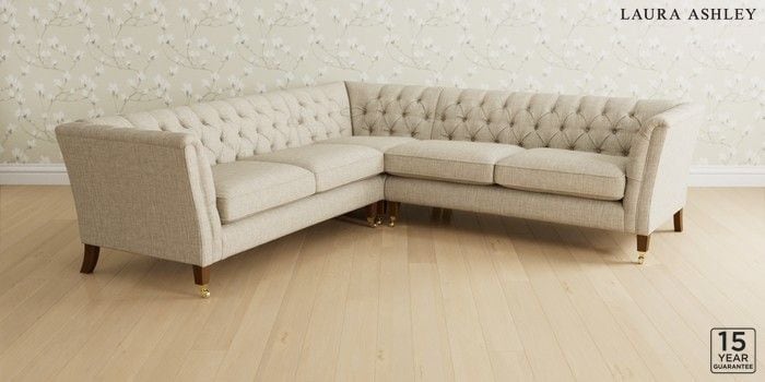 6.12.1 Buy Chatsworth Button Back by Laura Ashley Medium Corner Sofa - Universal Bainton Natural Straight Brass Castor - Teak from the Next UK online shop Click here to use our accessible website