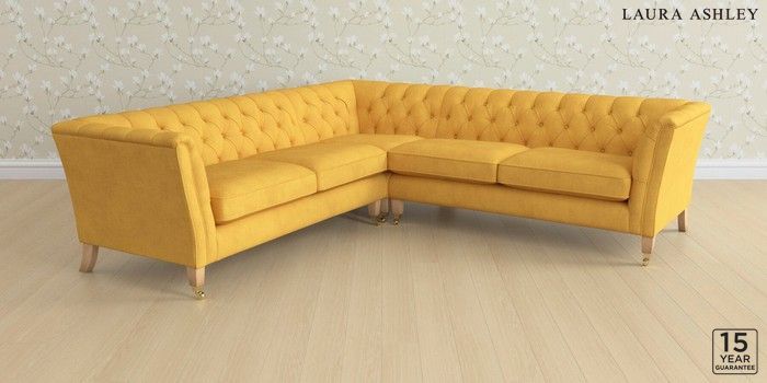 6.12.1 Buy Chatsworth Button Back by Laura Ashley Medium Corner Sofa - Universal Bainton Ochre Yellow Straight Brass Castor - Light Oak from the Next UK online shop Click here to use our accessible website