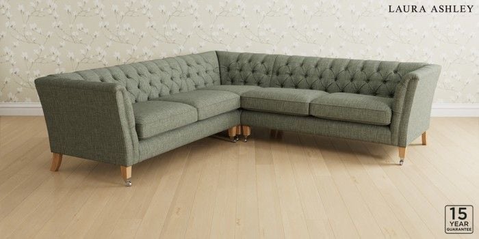 6.12.1 Buy Chatsworth Button Back by Laura Ashley Medium Corner Sofa - Universal Bainton Sage Green Straight Chrome Castor - Light Oak from the Next UK online shop Click here to use our accessible website
