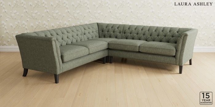 6.12.1 Buy Chatsworth Button Back by Laura Ashley Medium Corner Sofa - Universal Bainton Sage Green Straight Mid - Black from the Next UK online shop Click here to use our accessible website