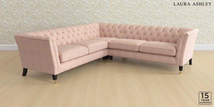 6.12.1 Buy Chatsworth Button Back by Laura Ashley Medium Corner Sofa - Universal Edwin Chenille Blush Pink Straight Brass Castor - Black from the Next UK online shop Click here to use our accessible website
