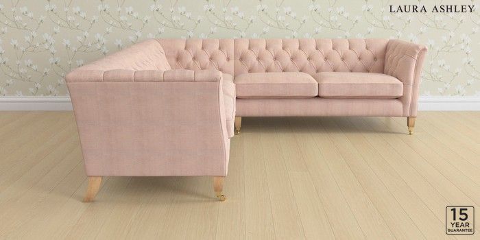6.12.1 Buy Chatsworth Button Back by Laura Ashley Medium Corner Sofa - Universal Edwin Chenille Blush Pink Straight Brass Castor - Light Oak from the Next UK online shop Click here to use our accessible website