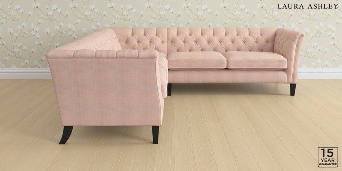 6.12.1 Buy Chatsworth Button Back by Laura Ashley Medium Corner Sofa - Universal Edwin Chenille Blush Pink Straight Mid - Black from the Next UK online shop Click here to use our accessible website