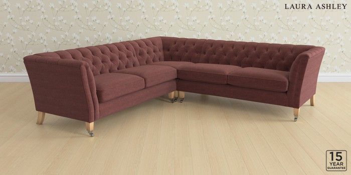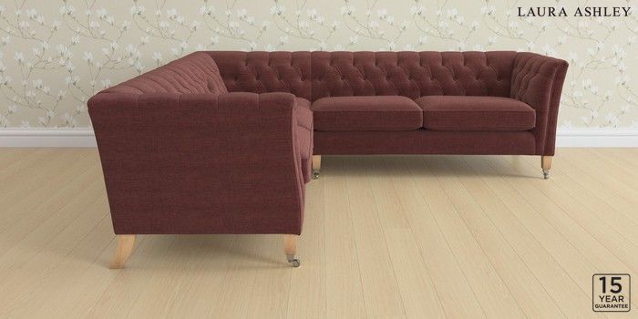 6.12.13 Buy Chatsworth Button Back by Laura Ashley Medium Corner Sofa - Universal Edwin Chenille Burgundy Red Straight Chrome Castor - Light Oak from the Next UK online shop Click here to use our accessible website