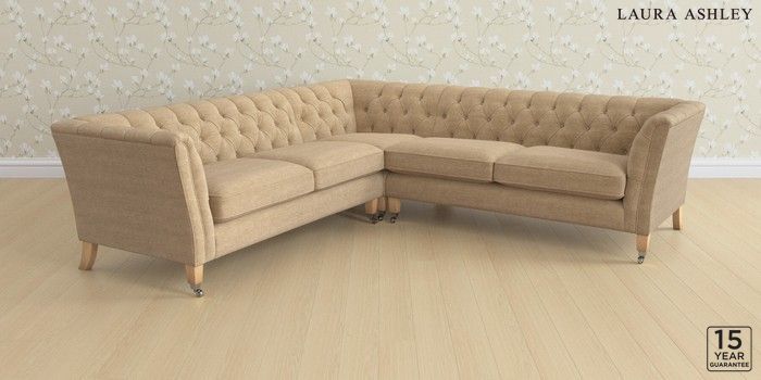 6.12.1 Buy Chatsworth Button Back by Laura Ashley Medium Corner Sofa - Universal Edwin Chenille Gold Natural Straight Chrome Castor - Light Oak from the Next UK online shop Click here to use our accessible website