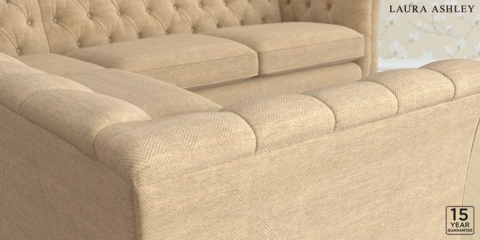 6.12.1 Buy Chatsworth Button Back by Laura Ashley Medium Corner Sofa - Universal Edwin Chenille Gold Natural Straight Chrome Castor - Teak from the Next UK online shop Click here to use our accessible website