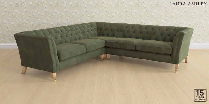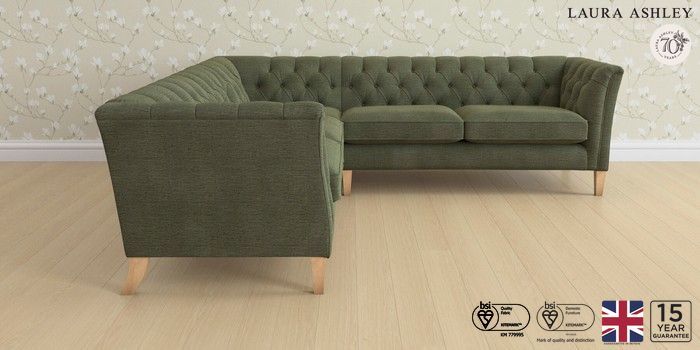 6.12.1 Buy Chatsworth Button Back by Laura Ashley Medium Corner Sofa - Universal Edwin Chenille Hedgerow Green Straight Mid - Light Oak from the Next UK online shop Click here to use our accessible website