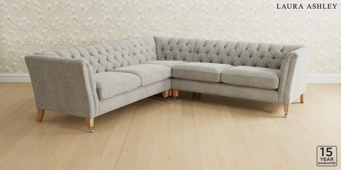 6.12.1 Buy Chatsworth Button Back by Laura Ashley Medium Corner Sofa - Universal Edwin Chenille Silver Grey Straight Chrome Castor - Light Oak from the Next UK online shop Click here to use our accessible website