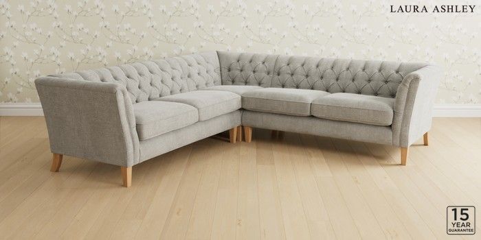 6.12.1 Buy Chatsworth Button Back by Laura Ashley Medium Corner Sofa - Universal Edwin Chenille Silver Grey Straight Mid - Light Oak from the Next UK online shop Click here to use our accessible website