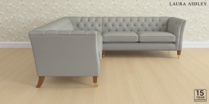 6.12.1 Buy Chatsworth Button Back by Laura Ashley Medium Corner Sofa - Universal Edwin Herringbone Pale Steel Grey Straight Brass Castor - Teak from the Next UK online shop Click here to use our accessible website