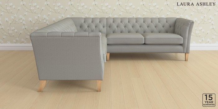 6.12.1 Buy Chatsworth Button Back by Laura Ashley Medium Corner Sofa - Universal Edwin Herringbone Pale Steel Grey Straight Mid - Light Oak from the Next UK online shop Click here to use our accessible website
