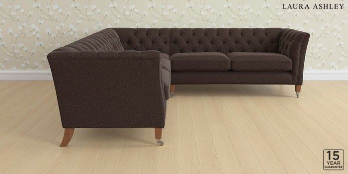 6.12.1 Buy Chatsworth Button Back by Laura Ashley Medium Corner Sofa - Universal Harley Chestnut Brown Straight Chrome Castor - Teak from the Next UK online shop Click here to use our accessible website