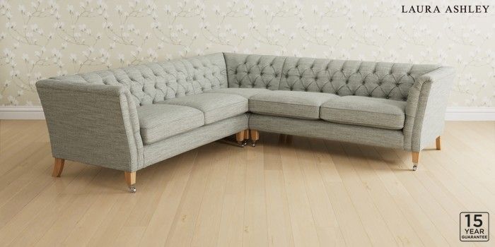6.12.1 Buy Chatsworth Button Back by Laura Ashley Medium Corner Sofa - Universal Harley Dove Grey Straight Chrome Castor - Light Oak from the Next UK online shop Click here to use our accessible website