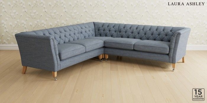 6.12.1 Buy Chatsworth Button Back by Laura Ashley Medium Corner Sofa - Universal Harley Seaspray Blue Straight Chrome Castor - Light Oak from the Next UK online shop Click here to use our accessible website