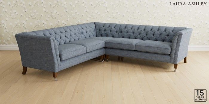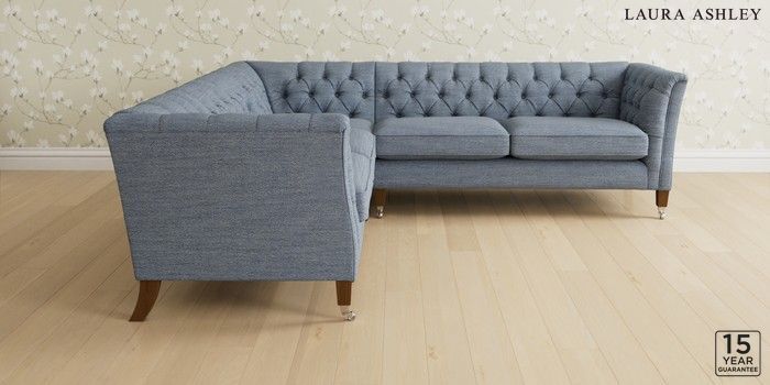 6.12.1 Buy Chatsworth Button Back by Laura Ashley Medium Corner Sofa - Universal Harley Seaspray Blue Straight Chrome Castor - Teak from the Next UK online shop Click here to use our accessible website