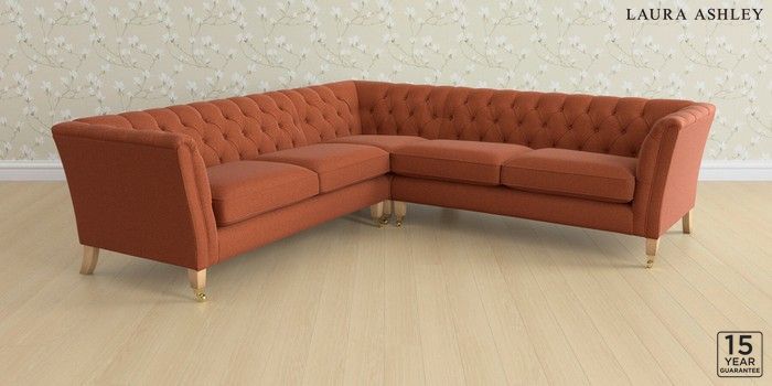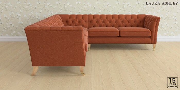 6.12.1 Buy Chatsworth Button Back by Laura Ashley Medium Corner Sofa - Universal Harley Terracotta Orange Straight Brass Castor - Light Oak from the Next UK online shop Click here to use our accessible website