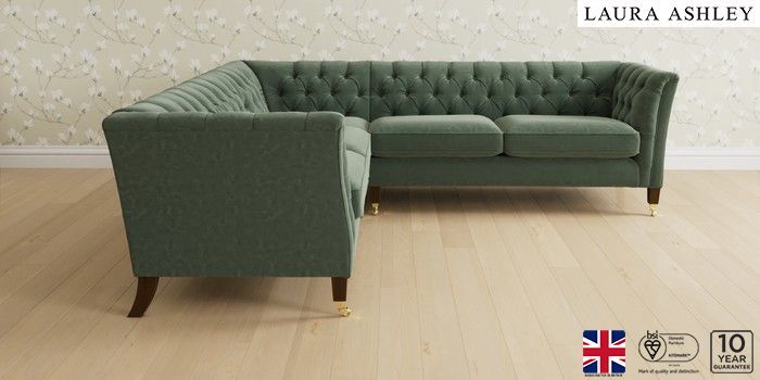 6.12.1 Buy Chatsworth Button Back by Laura Ashley Medium Corner Sofa - Universal Borwick Newport Blue Straight Brass Castor - Chestnut from the Next UK online shop Click here to use our accessible website