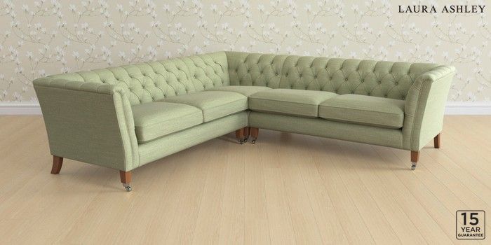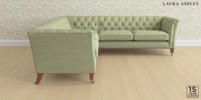 6.12.1 Buy Chatsworth Button Back by Laura Ashley Medium Corner Sofa - Universal Kinsham Hedgerow Green Straight Chrome Castor - Teak from the Next UK online shop Click here to use our accessible website