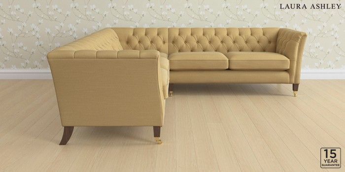 6.12.1 Buy Chatsworth Button Back by Laura Ashley Medium Corner Sofa - Universal Kinsham Ochre Yellow Straight Brass Castor - Chestnut from the Next UK online shop Click here to use our accessible website