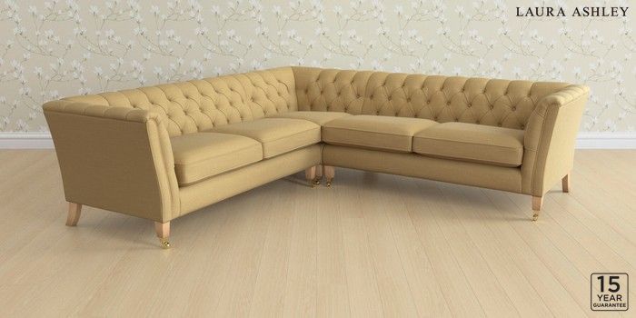 6.12.1 Buy Chatsworth Button Back by Laura Ashley Medium Corner Sofa - Universal Kinsham Ochre Yellow Straight Brass Castor - Light Oak from the Next UK online shop Click here to use our accessible website