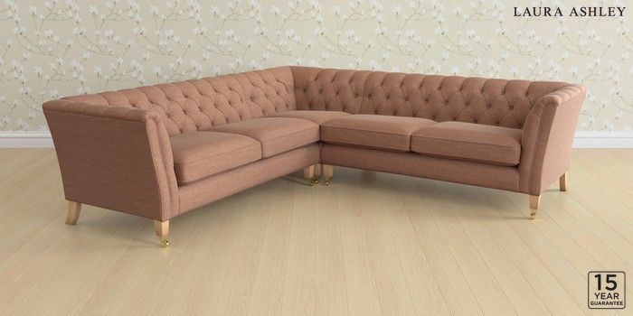 6.12.1 Buy Chatsworth Button Back by Laura Ashley Medium Corner Sofa - Universal Kinsham Rust Orange Straight Brass Castor - Light Oak from the Next UK online shop Click here to use our accessible website
