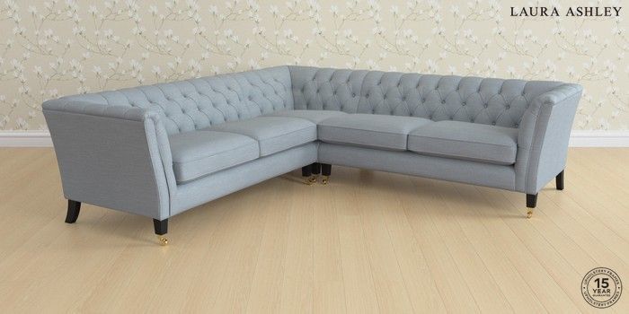 6.12.1 Buy Chatsworth Button Back by Laura Ashley Medium Corner Sofa - Universal Kinsham Seaspray Blue Straight Brass Castor - Black from the Next UK online shop Click here to use our accessible website