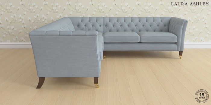 6.12.1 Buy Chatsworth Button Back by Laura Ashley Medium Corner Sofa - Universal Kinsham Seaspray Blue Straight Brass Castor - Chestnut from the Next UK online shop Click here to use our accessible website