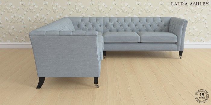 6.12.1 Buy Chatsworth Button Back by Laura Ashley Medium Corner Sofa - Universal Kinsham Seaspray Blue Straight Chrome Castor - Black from the Next UK online shop Click here to use our accessible website
