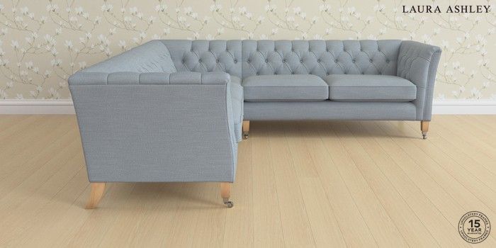 6.12.1 Buy Chatsworth Button Back by Laura Ashley Medium Corner Sofa - Universal Kinsham Seaspray Blue Straight Chrome Castor - Light Oak from the Next UK online shop Click here to use our accessible website