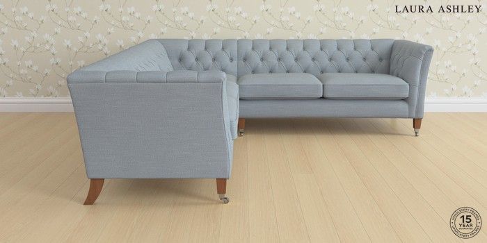 6.12.1 Buy Chatsworth Button Back by Laura Ashley Medium Corner Sofa - Universal Kinsham Seaspray Blue Straight Chrome Castor - Teak from the Next UK online shop Click here to use our accessible website
