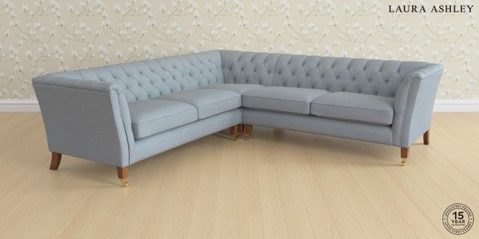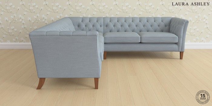 6.12.1 Buy Chatsworth Button Back by Laura Ashley Medium Corner Sofa - Universal Kinsham Seaspray Blue Straight Mid - Teak from the Next UK online shop Click here to use our accessible website