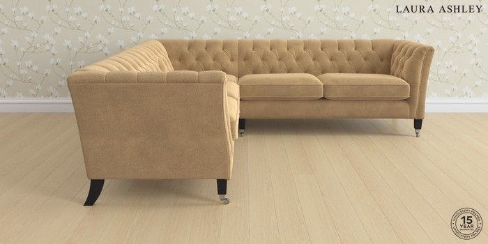 6.12.1 Buy Chatsworth Button Back by Laura Ashley Medium Corner Sofa - Universal Lundar Chenille Caramel Natural Straight Chrome Castor - Black from the Next UK online shop Click here to use our accessible website