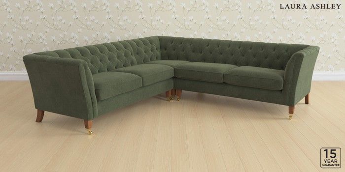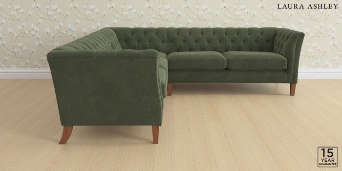 6.12.13 Buy Chatsworth Button Back by Laura Ashley Medium Corner Sofa - Universal Lundar Chenille Ivy Green Straight Mid - Teak from the Next UK online shop Click here to use our accessible website