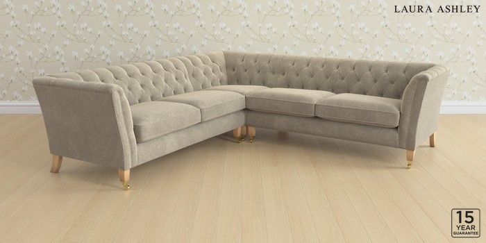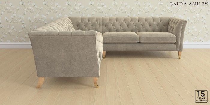 6.12.13 Buy Chatsworth Button Back by Laura Ashley Medium Corner Sofa - Universal Lundar Chenille Truffle Natural Straight Brass Castor - Light Oak from the Next UK online shop Click here to use our accessible website