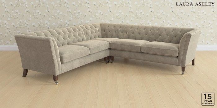 6.12.13 Buy Chatsworth Button Back by Laura Ashley Medium Corner Sofa - Universal Lundar Chenille Truffle Natural Straight Chrome Castor - Chestnut from the Next UK online shop Click here to use our accessible website