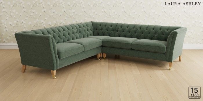 6.12.1 Buy Chatsworth Button Back by Laura Ashley Medium Corner Sofa - Universal Nantmor Fern Green Straight Brass Castor - Light Oak from the Next UK online shop Click here to use our accessible website