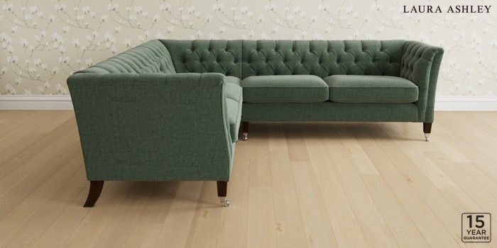 6.12.1 Buy Chatsworth Button Back by Laura Ashley Medium Corner Sofa - Universal Nantmor Fern Green Straight Chrome Castor - Chestnut from the Next UK online shop Click here to use our accessible website
