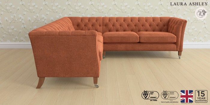 6.12.1 Buy Chatsworth Button Back by Laura Ashley Medium Corner Sofa - Universal Nantmor Rust Orange Straight Chrome Castor - Teak from the Next UK online shop Click here to use our accessible website