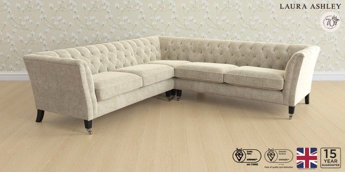 6.12.1 Buy Chatsworth Button Back by Laura Ashley Medium Corner Sofa - Universal Nantmor Truffle Natural Straight Chrome Castor - Black from the Next UK online shop Click here to use our accessible website