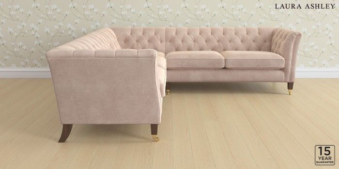 6.12.13 Buy Chatsworth Button Back by Laura Ashley Medium Corner Sofa - Universal Orla Chalk Pink Straight Brass Castor - Chestnut from the Next UK online shop Click here to use our accessible website