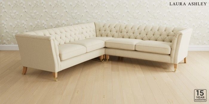 6.12.1 Buy Chatsworth Button Back by Laura Ashley Medium Corner Sofa - Universal Orla Oyster Natural Straight Brass Castor - Light Oak from the Next UK online shop Click here to use our accessible website