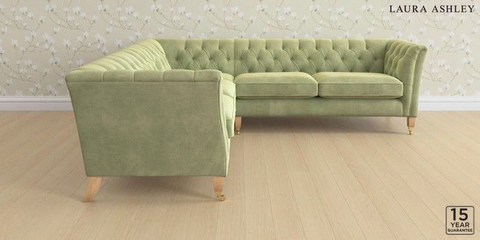 6.12.1 Buy Chatsworth Button Back by Laura Ashley Medium Corner Sofa - Universal Orla Pale Hedgerow Green Straight Brass Castor - Light Oak from the Next UK online shop Click here to use our accessible website