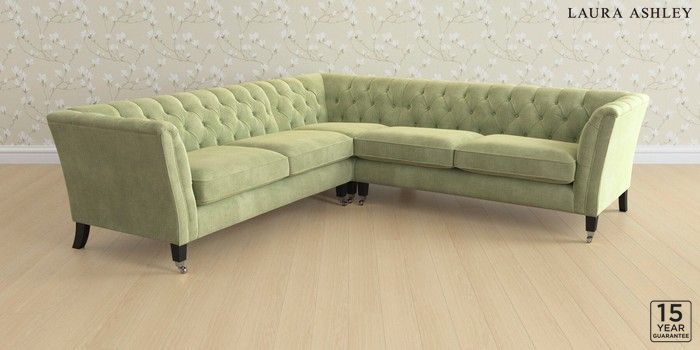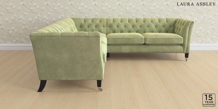 6.12.1 Buy Chatsworth Button Back by Laura Ashley Medium Corner Sofa - Universal Orla Pale Hedgerow Green Straight Chrome Castor - Black from the Next UK online shop Click here to use our accessible website