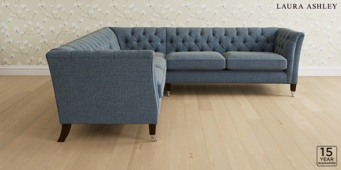 6.12.1 Buy Chatsworth Button Back by Laura Ashley Medium Corner Sofa - Universal Orla Seaspray Blue Straight Chrome Castor - Chestnut from the Next UK online shop Click here to use our accessible website