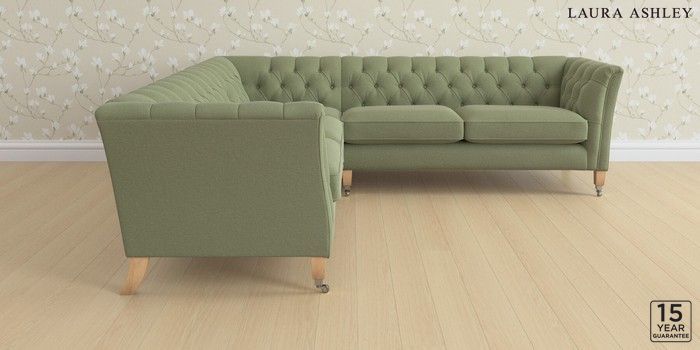 6.12.1 Buy Chatsworth Button Back by Laura Ashley Medium Corner Sofa - Universal Peyton Hedgerow Green Straight Chrome Castor - Light Oak from the Next UK online shop Click here to use our accessible website