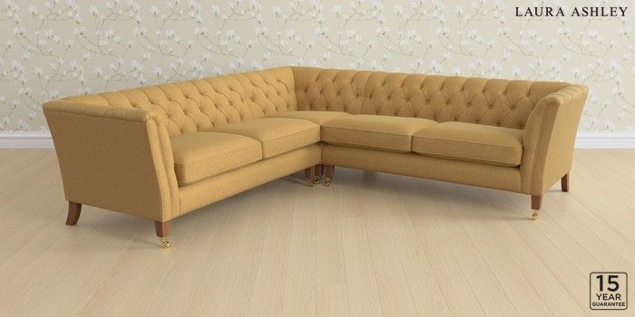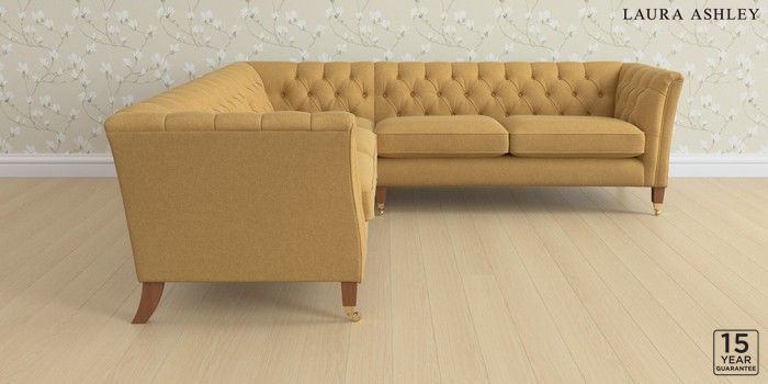 6.12.1 Buy Chatsworth Button Back by Laura Ashley Medium Corner Sofa - Universal Peyton Ochre Yellow Straight Brass Castor - Teak from the Next UK online shop Click here to use our accessible website