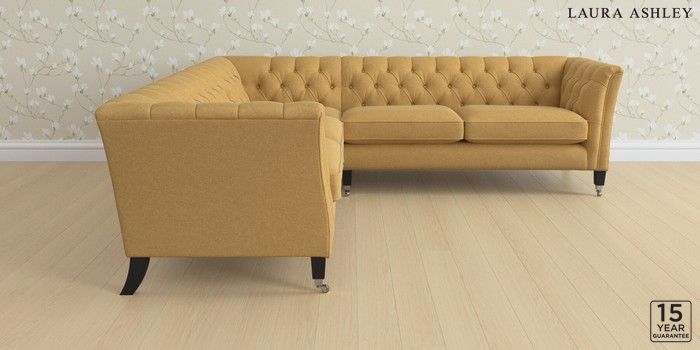 6.12.1 Buy Chatsworth Button Back by Laura Ashley Medium Corner Sofa - Universal Peyton Ochre Yellow Straight Chrome Castor - Black from the Next UK online shop Click here to use our accessible website