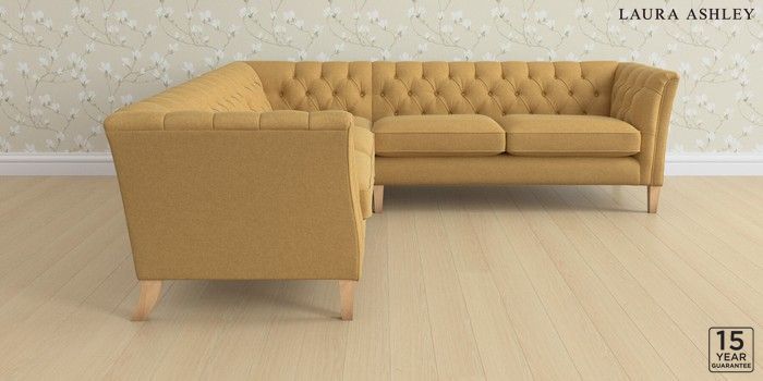 6.12.1 Buy Chatsworth Button Back by Laura Ashley Medium Corner Sofa - Universal Peyton Ochre Yellow Straight Mid - Light Oak from the Next UK online shop Click here to use our accessible website
